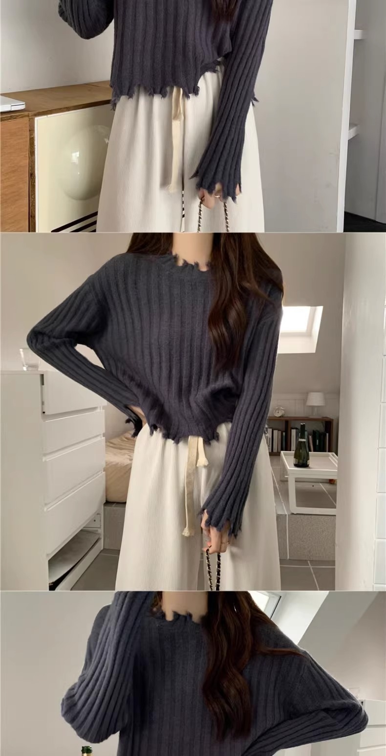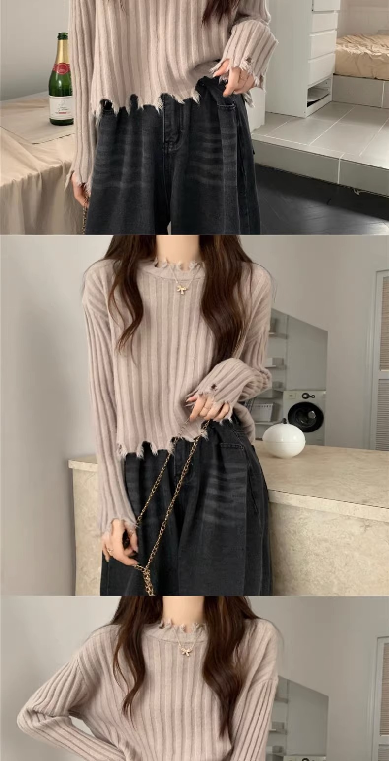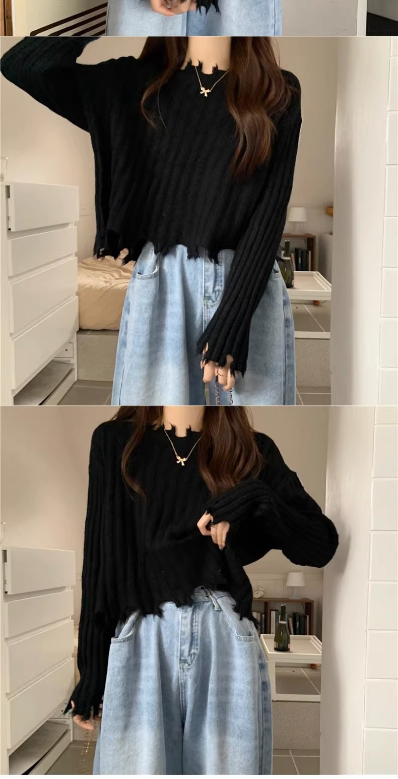 下擺破洞不規則軟糯針織打底衫毛衣女士設計感短款上衣